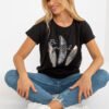 Straight cut blouse with short sleeves and round neckline. Decorative print on the front.
