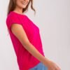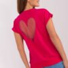 Blouse with short sleeves and a round neckline. A decorative heart-shaped mesh insert on the back.