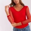 Blouse with a fitted cut made of ribbed fabric. Blouse with long transparent sleeves and a heart neckline.