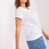 Looser cut blouse with short sleeves and a heart neckline. A glittering heart-shaped print on the front.