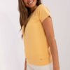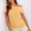 Blouse with short sleeves and a symmetrical neckline. Blouse with a fitted cut, made of ribbed fabric.