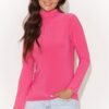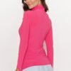 Functional women’s blouse made of stretchy, opaque fabric is a classic among blouses. The neckline in the form of a practical turtleneck, combined with long sleeves, will wrap you up on colder days. While the gold-plated tinsel in the upper part of the back, adds to its subtle elegance. Thanks to its simple form, it perfectly finds its way into casual styling, which you can wear both to the office and out on the town. The women’s turtleneck goes perfectly with both tailored pants and mom fit pants. This blouse is a combination of functionality and elegance in effect giving you a successful recipe for a look.