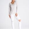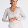 Blouse made of pleasant-to-wear fabric with long sleeves. V-shaped neckline optically elongates the neck.