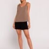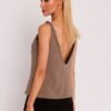 The knitted blouse is a unique design, created and made in Poland, featuring a unique design and attention to detail. It was designed for women who appreciate elegance and subtle sensuality. The main element of the blouse is the V neckline on the front, which gives it delicacy and femininity. However, it is the deep neckline on the back that makes this blouse unique and unforgettable. The revealing back cut adds a note of sensuality, while leaving room for subtlety. The cut of the blouse is an A-line, which means that it is loose at the top and gently tapers towards the bottom. It is a model worn over the head, which adds to the practicality and comfort of wearing it. The shoulder straps are twisted, which gives the blouse lightness and delicacy, while emphasizing the feminine silhouette. On the back of the blouse there is a decorative plaque, which is a subtle accent and adds character to the whole design. The blouse is carefully crafted, which emphasizes the high quality of the product. It is also worth noting that the blouse has no lining, which makes it light and airy. This knitted blouse is not just a garment, but a true work of tailoring art, which emphasizes the individuality and elegance of the woman wearing it. The presented combination of cut, necklines and details makes it ideal for both special occasions and everyday wear, adding style and sophistication to any outfit.