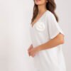 The oversize blouse is an ideal choice for those who value comfort and freedom in their everyday attire. Its loose fit makes it perfect for any occasion, especially for social gatherings or work. Made of high-quality polyester, which ensures durability and ease of cleaning, it is not only practical, but also extremely pleasant to wear. The style of the blouse is kept in a casual aesthetic, which makes it a perfect match for everyday styling. Its smooth material adds elegance and versatility, which allows you to freely combine it with different elements of your closet. The blouse has short sleeves and a v-neck, which gives it a lightness and makes it ideal for warm days. Its standard length makes it comfortable to wear and allows it to be freely paired with jeans, as well as a skirt or fabric pants. All in all, this oversize blouse is an excellent choice for those who appreciate both comfort and style in their everyday attire. Thanks to its versatility and simplicity, you can create a wide variety of outfits to suit your individual preferences and needs.