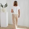 Captivating blouse with fruit print in beautiful colors. Made of cotton knit fabric, enzymed and siliconed. In the areas of the seeds on the print pasted decorative black glittering rhinestones.