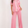 A blouse of elegant character, created from smooth fabric that gently accentuates movements and shapes. Its unique design is distinguished by decorative patches placed at breast level, decorated with stylish buttons, which add to its unique charm. This elegant solution gives the blouse a unique, professional look, perfect for days at work or important business meetings. The round neckline is versatile and subtle, blending perfectly with the overall look. The blouse is characterized by a standard length, making it suitable both for wearing outside skirts or pants, and for tucking into high-waisted pants. Decorative buttons placed on the front, on a contrasting insert, give the blouse elegance and subtle finesse, emphasizing its high quality workmanship. The main material used for the blouse is cotton, which ensures comfortable wearing and natural breathing of the skin throughout the day. This blouse is an excellent choice for women who appreciate elegance and style in any situation.