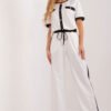 A blouse of elegant character, created from smooth fabric that gently accentuates movements and shapes. Its unique design is distinguished by decorative patches placed at breast level, decorated with stylish buttons, which add to its unique charm. This elegant solution gives the blouse a unique, professional look, perfect for days at work or important business meetings. The round neckline is versatile and subtle, blending perfectly with the overall look. The blouse is characterized by a standard length, making it suitable both for wearing outside skirts or pants, and for tucking into high-waisted pants. Decorative buttons placed on the front, on a contrasting insert, give the blouse elegance and subtle finesse, emphasizing its high quality workmanship. The main material used for the blouse is cotton, which ensures comfortable wearing and natural breathing of the skin throughout the day. This blouse is an excellent choice for women who appreciate elegance and style in any situation.