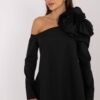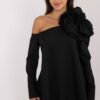 Elegant blouse made of smooth, monochromatic material, ideal for formal occasions and work. Made of high quality cotton, it provides comfortable wear and an elegant look. A decorative fabric flower in the form of a brooch on the left shoulder adds a sophisticated touch, making it unique and stylish. The blouse has an asymmetrical neckline, which emphasizes the modern design, while the long sleeve and standard length make it a versatile closet item. The zipper closure at the back ensures comfort and a perfect fit. An ideal choice for women who appreciate classic elegance with original details.