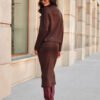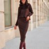 Blouse Lydia is a wardrobe essential that you need to have in your closet for the autumn-winter season. Made of a comfortable material that will guarantee you warmth and comfort. The sleeve does not restrict movement, and the built-in turtleneck protects against the cold. The standard length allows you to wear the blouse loosely or tucked into pants or a skirt. Blouse Lydia looks fantastic with skirt Carmen, creating a trendy and stylish total look suitable for cooler days. Blouse Lydia is available in an autumn color range, allowing for the creation of many different stylizations. You can pair it as a set with a tight skirt Carmen or combine it with long pants that you already have in your closet. Blouse Lydia will look great with heeled ankle boots and a small quilted bag with a chain. The product is produced and sewn in Poland.
