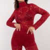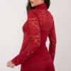 Elegant lace blouse with a fitted cut, ideal for special occasions and elegant meetings. It is made of high-quality materials, such as polyester, viscose and elastane, which ensure comfortable wearing and a subtle fit to the figure. The model is characterized by a standard length and a sophisticated texture of lace material, which adds a unique charm to the whole. The long sleeve and turtleneck emphasize the elegant style of the blouse, making it an excellent choice for formal outings.