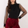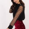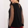 Elegant blouse with subtle, feminine style, perfect for formal occasions and work. Made of smooth fabric that is a blend of polyester and elastane, providing comfort and gently adjusting to the silhouette. The blouse has a round neckline, and its decoration is eye-catching, long sleeves made of mesh, which add lightness and elegance. Puffy sleeves with decorative pleats on the shoulders and delicate buttons give the whole a unique character. The standard length makes the blouse look great with both skirts and trousers, creating elegant stylizations.
