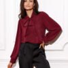 Blouse with long, puffed sleeves finished with decorative buttoned cuffs. It has a decorative tie at the neckline.