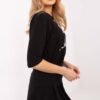Stylish everyday blouse of standard length, made of high-quality cotton with elastane, which ensures comfort and perfect fit. The model with 3/4 sleeves and a round neckline is a universal choice for any occasion. The dominant pattern combines print with inscriptions, giving the blouse a fashionable and modern character. Decorative jets on the front add a subtle glow, emphasizing the unique style. Ideal for casual stylizations, it goes well with both jeans and elegant pants or a skirt.
