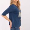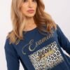 Stylish everyday blouse of standard length, made of soft cotton with elastane for comfort and perfect fit. The model with 3/4 sleeves and a round neckline is a universal choice for any occasion. The dominant pattern combines a print with an animal motif on the front, giving the blouse a fashionable and distinctive character. Excellent for casual stylizations, it goes well with both jeans, skirts, or elegant trousers.