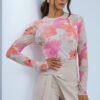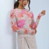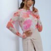 Tulle blouse with long sleeves is a unique piece of clothing that combines lightness and elegance. Made of delicate material, it subtly emphasizes the silhouette, giving the outfit a fancy character. The round neckline provides a classic and versatile look, and the colorful print on the fabric adds originality and expressiveness. Perfect for both everyday wear and special occasions, it pairs well with elegant skirts and casual jeans.