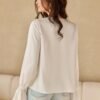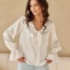Shirt with long, puffy sleeves finished with elastic band. It has decorative lacing at the neckline.