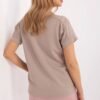 Casual everyday blouse in a classic, universal cut. Made of a blend of viscose, polyester, and elastane, which ensures softness, breathability, and comfort when wearing. The smooth material makes it easy to match with different stylizations. A model of standard length, with short sleeves and a round neckline that emphasizes the natural shape of the neck. Excellent for everyday wear, it pairs well with both pants and skirts, creating comfortable yet stylish outfits.