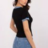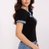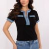 A fitted women’s blouse in a casual style is a great choice for everyday wear. Made of soft cotton with a touch of elastane, it perfectly fits the silhouette, providing comfort and freedom of movement. The classic V-neck emphasizes the feminine character, and the short sleeves make the blouse versatile for any season. An exceptional accent is the finishing with denim material, which adds originality and lightness to it. The standard length makes the blouse look great with both jeans and skirts, creating stylish and comfortable everyday outfits.