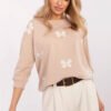 Casual women’s blouse, perfect for everyday wear and work. Made of a soft blend of cotton and elastane, it provides comfort and excellent fit. The classic cut with a standard length and 3/4 sleeves makes it a versatile wardrobe staple. The round neckline adds subtlety, and the decorative embroidery in the shape of ribbons with zircons gives the blouse an elegant and feminine character. An excellent choice for women who appreciate style and comfort in their daily outfits.