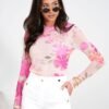 Tulle blouse with long sleeves is a unique wardrobe piece that combines lightness and elegance. Made of delicate material, it subtly emphasizes the silhouette, giving the styling a fancy character. The round neckline ensures a classic and universal look, and the colorful print on the fabric adds originality and distinctiveness. Perfect for both everyday wear and special occasions, it pairs well with elegant skirts as well as casual jeans.