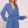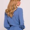 Stylish blouse made of lightweight, crepe fabric with a clear structure and matte finish. The short crop top style, which ends at the waist, beautifully highlights the silhouette and pairs perfectly with high-waisted pants or layered stylings. The model features a deep V-neckline, fastened with a discreet snap, with the additional option of tying the front to create an asymmetrical, loose knot effect. Long, puffy sleeves finished with an elastic band add lightness and a romantic character to the blouse. Designed and made in Poland, with attention to detail and comfort in wearing.