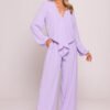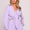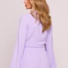 Stylish blouse made of lightweight, crepe fabric with a distinct texture and matte finish. The short crop top style, which ends at the waist, beautifully emphasizes the silhouette and pairs perfectly with high-waisted bottoms or layered outfits. The model features a deep V-neckline, fastened with a discreet snap, with the additional option to tie the front, creating an asymmetric, loose knot effect. Long, puffy sleeves finished with elastic cuffs add lightness and a romantic character to the blouse. Designed and sewn in Poland, with attention to detail and comfort of wearing.