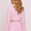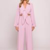 Stylish blouse made of light, crepe fabric with a distinct texture and matte finish. The short crop top style, which ends at the waist, beautifully accentuates the silhouette and pairs perfectly with both high-waisted bottoms and layered stylings. The model features a deep V-neckline, fastened with a discreet snap button, with the additional option to tie the front, creating an effect of an asymmetrical, loose knot. Long, puffy sleeves finished with an elastic band add lightness and a romantic character to the blouse. Designed and made in Poland, with attention to detail and comfort of wearing.