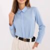 The elegant shirt with a classic cut is the perfect choice for various occasions, it will work both as a part of a formal outfit and a daily work outfit. Made of dominant cotton, it ensures comfort and breathability throughout the day. The smooth fabric emphasizes the minimalist, timeless character of the blouse, and the decorative strip on the front adds a subtle charm and elegance to it. The model with a standard length, long sleeves, and a classic collar blends perfectly with a blazer, trousers with cuffs, or a pencil skirt. It is a versatile wardrobe piece that should be in every woman’s closet.