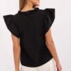 An elegant blouse with a smooth finish is a timeless proposition for women who appreciate classic and subtle details. Made of dominant cotton, it provides comfort while looking incredibly stylish and feminine. The blouse has a standard length, making it perfect to pair with both pants and a skirt. The short sleeves in the form of ruffles give it lightness and a romantic character, while the round neckline finished with a small, decorative ruffle is an elegant accent that attracts attention. It is the perfect choice for formal occasions and for work, it will work perfectly in office stylings, combining comfort with elegance.