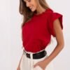 An elegant blouse with a smooth finish is a timeless proposition for women who appreciate classic and subtle details. Made of dominant cotton, it ensures comfort while looking extremely stylish and feminine. The blouse has a standard length, which makes it perfect for pairing with both pants and skirts. The short sleeves in the form of flounces give it lightness and a romantic character, while the round neckline finished with a small, decorative flounce is an elegant accent that catches the eye. It is an ideal choice for formal occasions and for work, it will work perfectly in office stylizations, combining comfort with elegance.