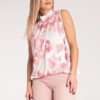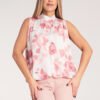 Sleeveless top. Tied at the back of the neck. Viscose lining. Elastic band at the bottom.