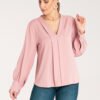 Blouse with long sleeves made of high-quality satin. V-neckline with elegant stitching. Cuffs fastened with buttons.