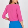 An elegant women’s blouse with a smooth texture, distinguished by a subtle, decorative finish at the bottom on the front, which adds class and sophistication to the whole. A model of standard length, with a round neckline and 3/4 sleeves, an ideal proposal for formal occasions or for elegant office stylizations. Made of high-quality blend of cotton, polyester, and elastane, the blouse combines comfort, durability, and delicate flexibility, ensuring comfortable wear throughout the day. The minimalist form and careful finishes make the blouse look exceptionally tasteful and timeless.