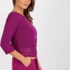 Stylish women’s blouse with a smooth texture, distinguished by subtle, decorative finish at the bottom at the front, which adds class and sophistication to the whole. A model of standard length, with a round neckline and 3/4 sleeves, an ideal proposition for formal occasions or elegant office stylizations. Made of high-quality blend of cotton, polyester, and elastane, the blouse combines comfort, durability, and delicate elasticity, ensuring comfort all day long. The minimalist form and careful finishes make the blouse look exceptionally tasteful and timeless.