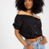Everyday boho style blouse, perfect for summer days and casual, feminine outfits. Made of breathable, natural cotton, ensuring comfort throughout the day. A model of short length and a sensual off-the-shoulder neckline that beautifully showcases the arms and adds lightness to the entire silhouette. The blouse has short sleeves and amazes with its dominant, lace embroidery, emphasizing the boho character of the design. Additional decoration is decorative buttons at the front, which give the whole a subtle and stylish accent. An ideal proposition for everyday outings, walks or summer gatherings.
