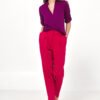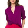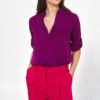 Made of high-quality viscose, the blouse will work perfectly in soft office stylizations. It goes well with high-waisted black cigarette pants and pencil skirts. The blouse has unique ruching which gives an extraordinary look to the neckline, as well as rolled-up sleeves. The relaxed fit looks good on the silhouette.