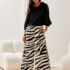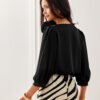 Giana blouse is an elegant proposal made of high-quality satin fabric, which delicately reflects the light, adding a subtle glow to the styling. Attention is drawn to the round neckline decorated with an impressive rose, a decorative accent that distinguishes this model and gives it a unique character. Wide 3/4 sleeves in a puffy form emphasize the shoulders, adding lightness and feminine charm to the blouse. The loose fit guarantees comfort and full freedom of movement, making this model not only stylish, but also functional. Giana will work perfectly as part of elegant outfits, just combine it with long, satin Elsa pants, a simple blazer, and classic heels to create a chic look for special occasions. It is the perfect choice for family celebrations, holidays, receptions, or other events where you want to look classy and feel comfortable.
