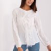 Elegant blouse of standard length, made of a combination of polyester, viscose, and elastane, providing comfort and impeccable appearance throughout the day. Smooth fabric emphasizes the refined character of the model, and a vertical flounce on the front, adorned with small beads, adds subtle shine and originality. The classic, round neckline and long sleeves give the blouse a versatile, formal character. The lack of fastening makes the model comfortable to put on. Ideal for both work and elegant meetings.