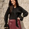 Model Isabel is a viscose blouse distinguished by an elegant tie at the neck and decorative ruffled cuffs. The lightweight, breathable fabric combined with a loose cut ensures comfort and subtly emphasizes the silhouette. Carefully made in Poland, it combines classic elegance with a modern character. Isabel will work well in office stylings with elegant trousers, as well as in evening sets with a fitted skirt. Designed and made in Poland.