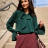 Model Isabel is a viscose blouse distinguished by an elegant tie at the neck and decorative flounced cuffs. The light, breathable fabric combined with a loose cut provides comfort and subtly accentuates the silhouette. Carefully sewn in Poland, it combines classic elegance with a modern character. Isabel will work well in office stylizations with elegant trousers, as well as in evening sets with a fitted skirt. Designed and made in Poland.