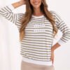 Casual women’s blouse made of soft micromodal with added elastane, which ensures comfort and perfect fit to the silhouette. The classic, round neckline and long sleeves make the model comfortable and versatile, perfect for both everyday wear and work. The blouse of standard length is decorated with a delicate striped pattern, and patches on the front give it a fashionable, modern character. A model without fastening, easy to style and combine with other wardrobe items.