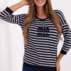 Casual women’s blouse made of soft micromodal with elastane, which ensures comfort and perfect fit to the silhouette. The classic, round neckline and long sleeves make the model comfortable and versatile, perfect for both everyday wear and work. The blouse of standard length is decorated with a delicate striped pattern, and patches on the front add a fashionable, modern character. A model without fastening, easy to style and combine with other wardrobe items.