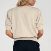 Fashionable women’s oversize blouse is the perfect combination of freedom and style. It has a round neckline and short sleeves finished with subtle gathering at the cuff, which adds lightness and a girly character to the whole look. The blouse is put on over the head, and the bottom is finished with a high cuff, allowing for easy adjustment to the silhouette and ensuring comfortable wear. Thanks to its loose fit, it will work well in both casual everyday stylizations and more fashionable outfits.