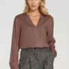 Classic women’s blouse with a regular cut, made of light and breathable viscose. The model has a V-neck with a wide pleat, which visually slims the silhouette and adds elegance to the whole. The blouse has long sleeves with cuffs and is put on over the head, which ensures comfortable wear. The simple, timeless cut makes it perfect for both everyday and office stylizations.