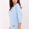 Everyday casual blouse, perfect for everyday wear. Made of soft cotton with elastane, it provides comfort and freedom of movement. It has a standard length, 3/4 sleeves, and a round neckline with decorative drawstrings that add a light, feminine character. The front is adorned with subtle embroidery, and at the bottom on the left side, there is a stylish patch emphasizing the modern design. This is a versatile model that will work great both at work and in everyday stylizations.