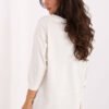 Casual everyday blouse, perfect for everyday wear. Made of soft cotton with a touch of elastane, it provides comfort and freedom of movement. It has a standard length, 3/4 sleeves and a round neckline with decorative drawstrings that add a light, feminine character. The front is adorned with subtle embroidery, and at the bottom on the left side there is a stylish patch emphasizing the modern design. This is a versatile model that will work great both at work and in everyday stylizations.