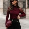 An elegant blouse/turtleneck with gold buttons in a trendy burgundy color is a perfect choice for any woman who values comfort and style. This unique model combines classic with modern accents, making it ideal for various occasions. Whether you are going to meet friends, to work, or a special occasion, this blouse will surely attract attention and boost your confidence. Made from high-quality materials, the blouse consists of 70% viscose, providing exceptional softness and breathability, and 30% polyester which makes the clothing durable and easy to care for. As a result, you can enjoy not only an elegant look but also comfort throughout the day. The design of the blouse stands out with gold buttons, adding elegance and a modern character. These subtle details complement the burgundy color, creating a harmonious whole. The blouse pairs perfectly with both pants and skirts, allowing for the creation of various styles that will emphasize your individual style. Don’t hesitate to enrich your wardrobe with this unique piece of clothing. Choose the blouse/turtleneck with gold buttons in burgundy and enjoy its versatility and unique style. Add it to your cart and let yourself be carried away by fashion inspirations!