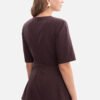 Shirt made of smooth sweatshirt fabric with a weight of 260 g with a looped underside, combining comfort with an elegant look. The model has no pockets or lining, fastened at the back with a concealed zipper, ensuring comfort and a neat finish. The classic round neckline gives the shirt a universal character, and the elbow-length sleeves in a straight cut make it perfect for various occasions. The subtly flared peplum adds a feminine charm, emphasizing the waist and shaping the silhouette. The slightly tailored cut, with a fitted top and gently flared bottom, makes the shirt look beautiful in both elegant and casual stylings. The hip-length makes it comfortable and easy to pair with various wardrobe elements. Designed and made in Poland from fabric produced in Łódź, a guarantee of quality and attention to detail.
