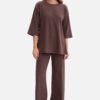 Women’s blouse made of high-quality ribbed fabric weighing 250 g, which is elastic, comfortable, and pleasant to wear. A model put on over the head, without pockets and lining, maintained in a modern, casual style. The classic round neckline makes the blouse versatile and easy to combine with various wardrobe items. 3/4 sleeves, straight and slightly wide, give it a casual character, and side slits at the bottom add lightness and ensure greater comfort of movement. Loose, oversized fit with a simple cut perfectly masks minor imperfections, and the hip-length makes the blouse practical and timeless. Excellent for both everyday stylizations and in a more elegant version, combined with a skirt or trousers. Designed and sewn in Poland from fabric produced in Łódź, a guarantee of quality and local craftsmanship.